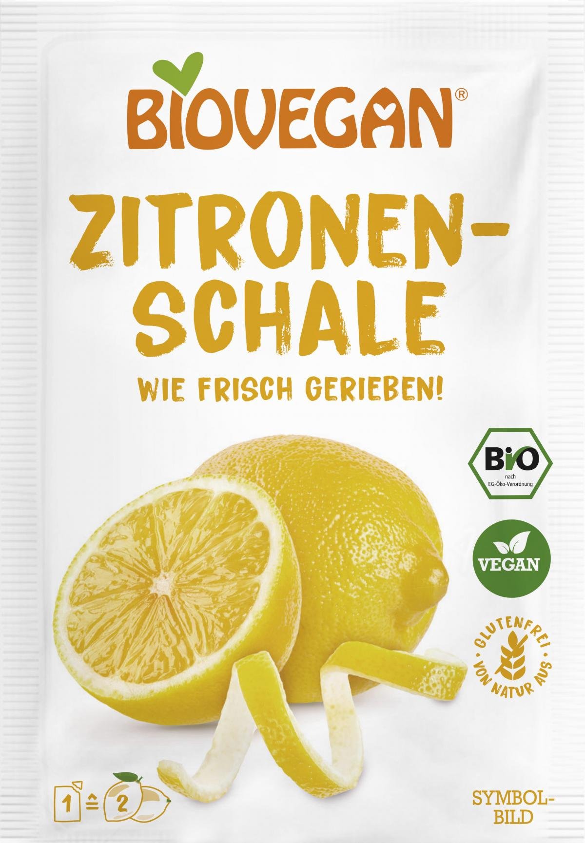 BIOVEGAN Zitronenschale, gerieben, verfeinert mit ihrer Frische und feinen Säure sonnengereifter Bio-Zitronen auf natürliche und biologische Art Kuchen, Gebäcke, Desserts, Saucen und Getränke. Durch die schonende Gefriertrocknung und Verarbeitung der Schale, bei der das natürliche Aroma bewahrt bleibt, garantiert BIOVEGAN eine unnachahmliche Frische und das Aroma fein-spritziger Bio-Zitronen.