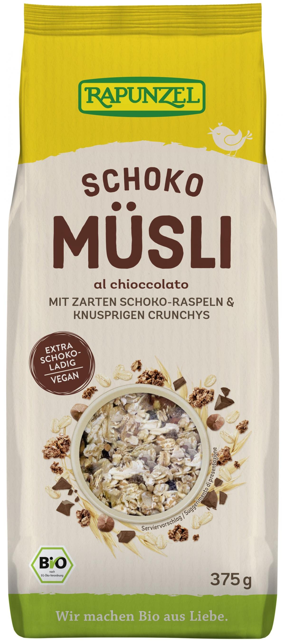 Schokoladig, nussig, knusprig. Das Verwöhn-Frühstück mit vollwertigen Haferflocken, zarten Zartbitter-Schoko-Raspeln und knusprigen Schoko-Nuss-Crunchys. Fein abgerundet mit Amaranth und echter Bourbon-Vanille.