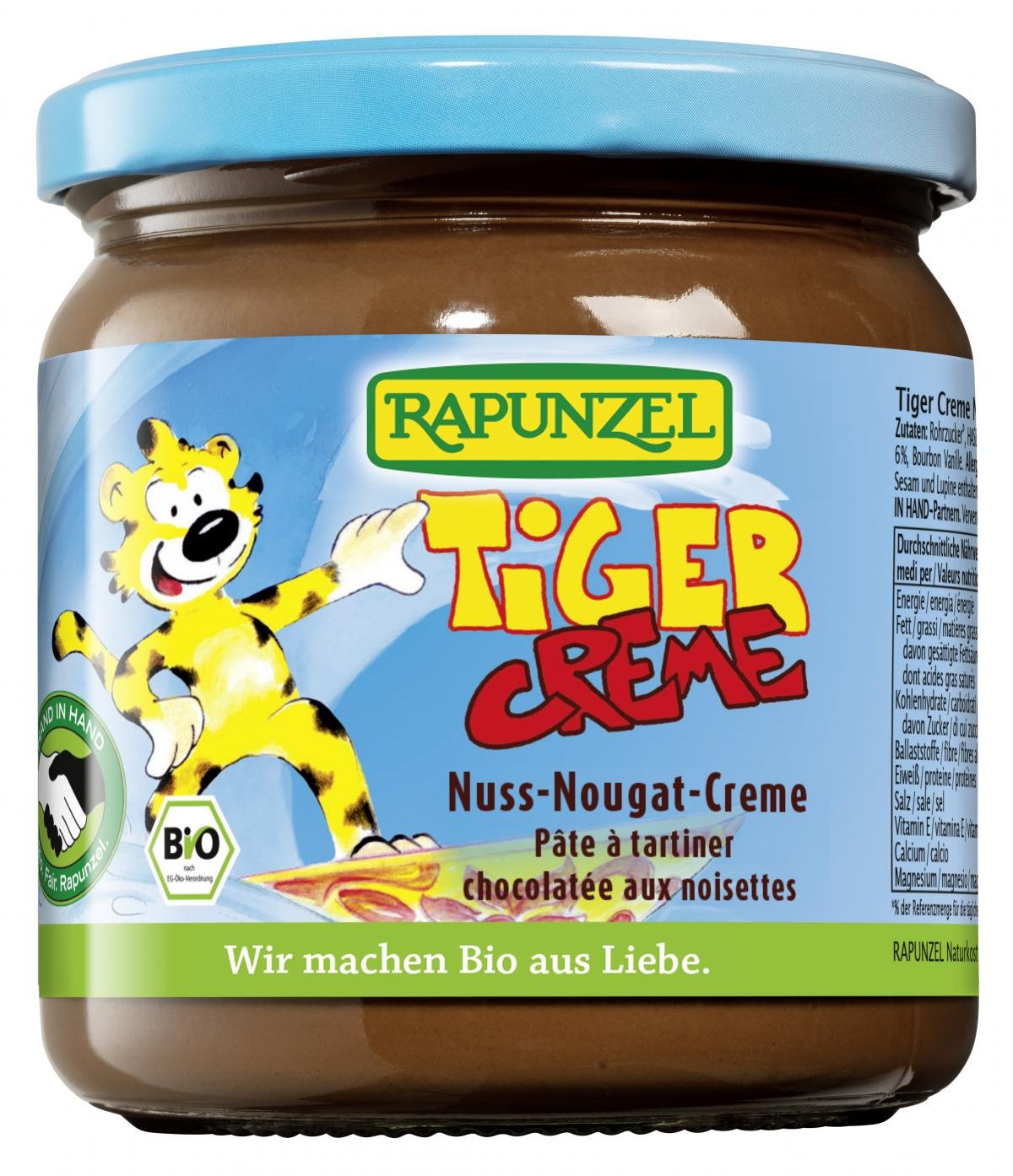 Frisch geröstete Haselnüsse, leckerer Kakao und Milch machen den 'Tiger' super schokoladig und cremig. Kakao, Cristallino Rohrzucker und Palmöl sind fair gehandelt und stammen von unseren HAND IN HAND-Partnern. Die Konsistenz ist temperaturabhängig. Bei Zimmertemperatur cremig, im Kühlschrank gelagert fest.