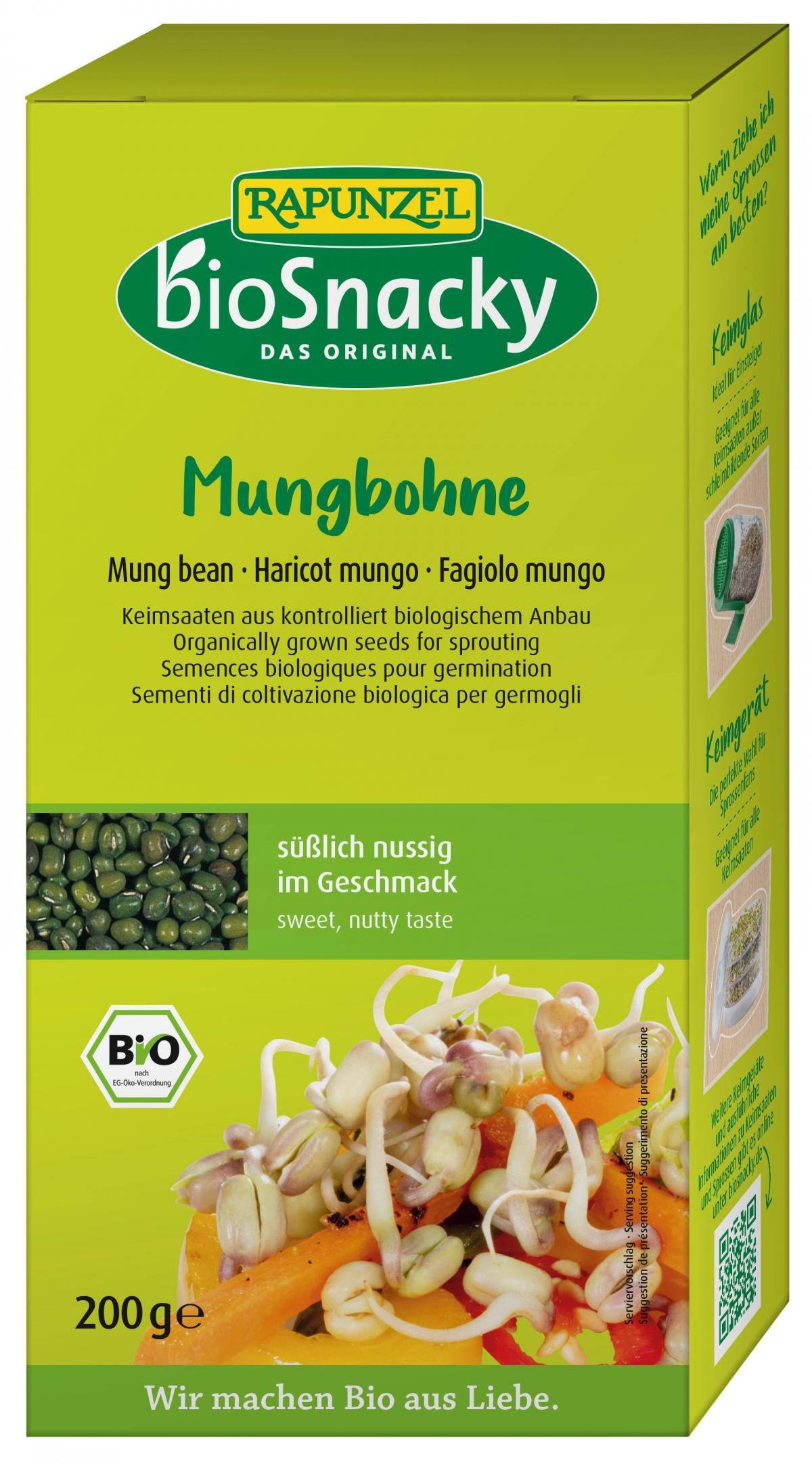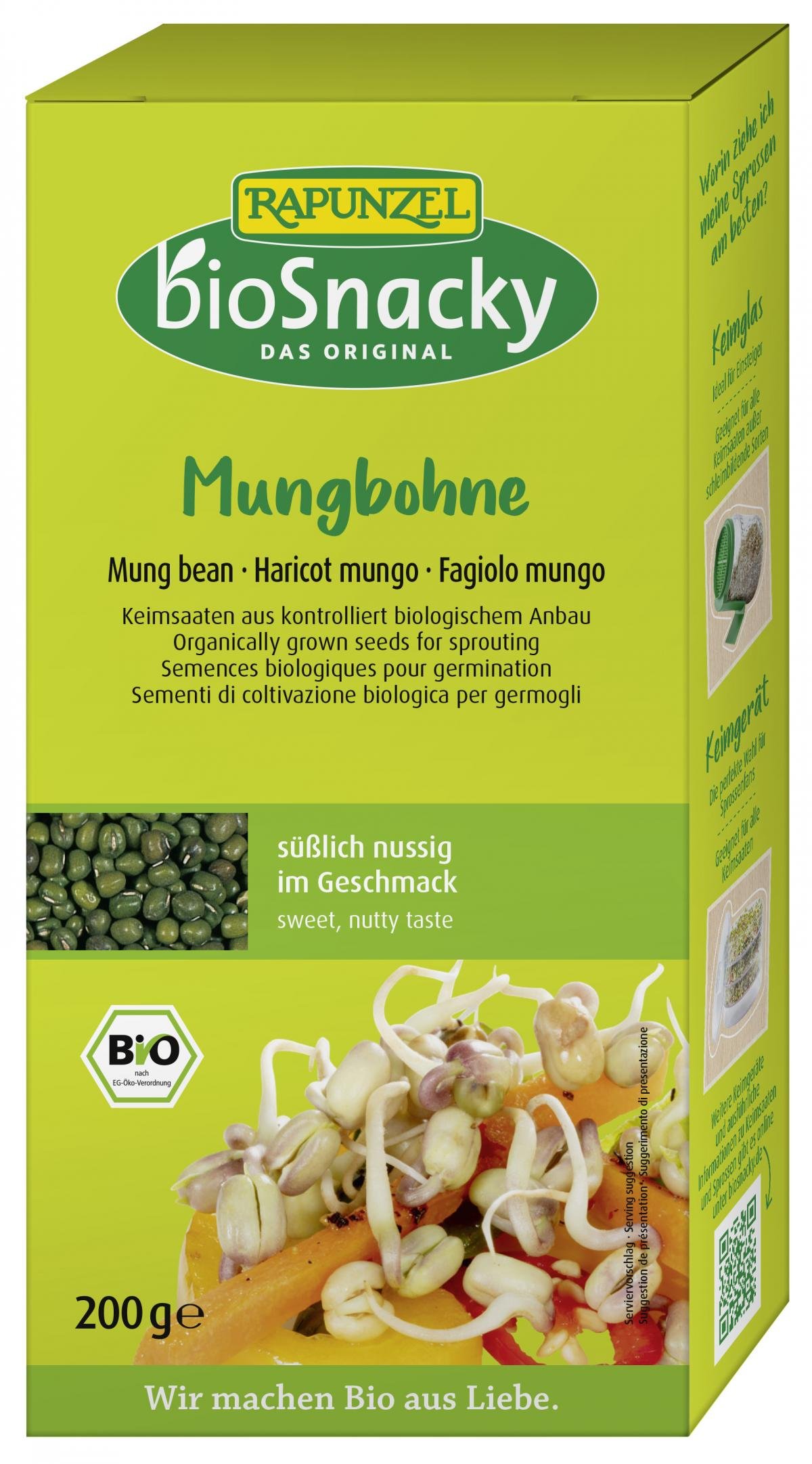 Mungbohnen-Sprossen schmecken süßlich und knackig frisch. Hinter den aus asiatischen Gerichten bekannten 'Sojasprossen' verbergen sich oft gekeimte Mungbohnensprossen, ideal für Wokgerichte, Salate und in Wraps. Sprossen sind die einfachste Methode, um zu jeder Jahreszeit wichtige Vitamine, Mineralstoffe, Spurenelemente, sekundäre Pflanzenstoffe und Ballaststoffe in die Ernährung zu bringen - und das ganz frisch geerntet und 'regional' von der heimischen Fensterbank!