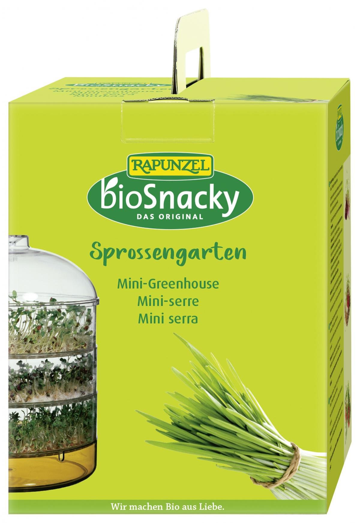 Zur optimalen Aufzucht von Sprossen und Keimlingen aller Art. Es können gleichzeitig drei verschiedene Keimsaaten auf drei Ebenen gekeimt werden. Die oberste Saatschale ist aufgrund der Höhe ideal für die Zucht von Grünkraut geeignet z.B. für das bioSnacky Weizengras. Die Bewässerung erfolgt ganz komfortabel von oben über den Deckel und erreicht alle Etagen gleichermaßen. Der Sprossengarten ist für optimalen Lichteinfall, gute Luftzirkulation und beste Wachstumsbedingungen konstruiert. Da er spülmaschinengeeignet (max. 65°C) ist, ist die Reinigung ebenso einfach wie die Sprossenzucht.
