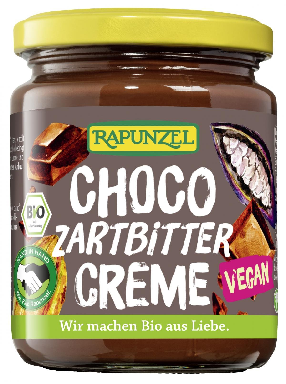 Der Schoko-Aufstrich für Zartbitter-Fans! 20% feinster, aromatischer Kakao schenkt dieser zart schmelzenden Creme einen intensiv schokoladigen Geschmack. Abgerundet mit einem Hauch echter Bourbon Vanille. Die Zutaten für die köstliche Schoko-Creme sind fair gehandelt und stammen von unseren HAND IN HAND-Partnern.