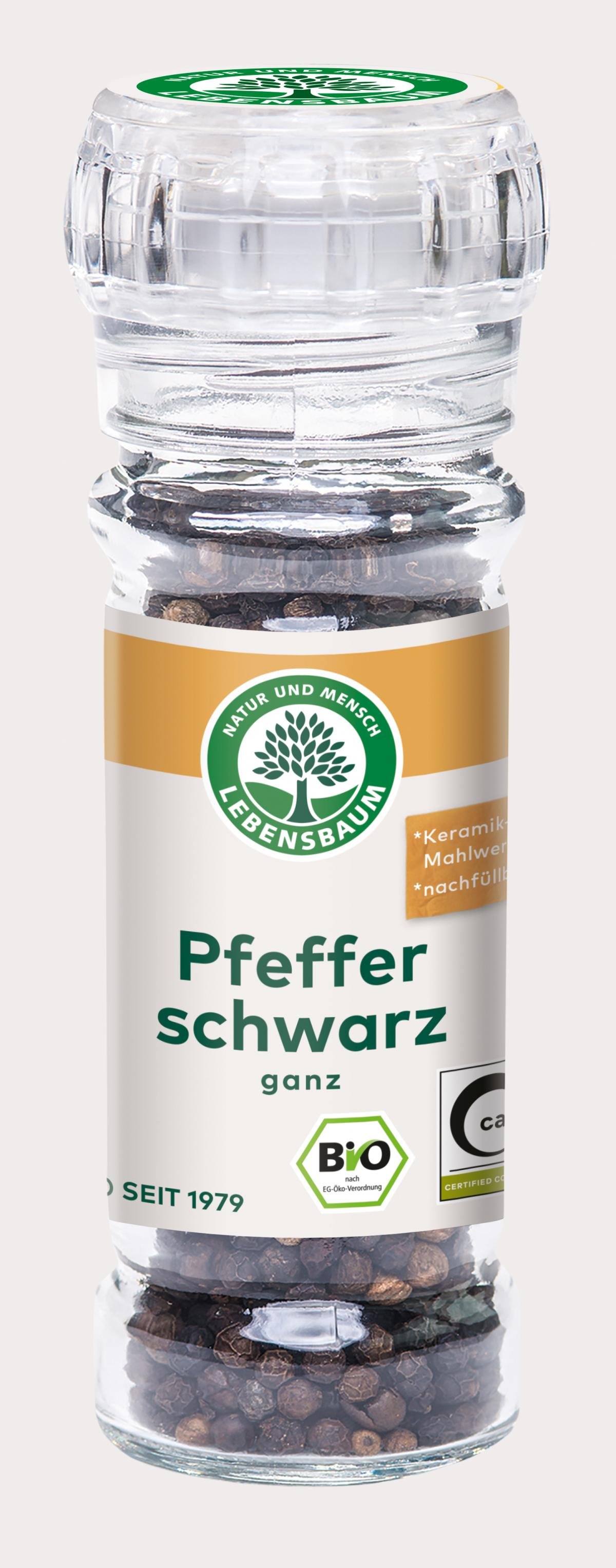 Schwarzer Pfeffer schmeckt fruchtig-scharf. Die Beeren dieser Schlingpflanze werden noch vor der Reife von Hand gepflückt und dann sonnengetrocknet, wodurch sich die schwarze Farbe einstellt. Schwarzer Pfeffer verleiht allen Speisen und Gerichten eine pikante Note.