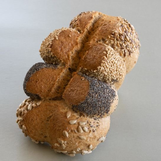 Weizenvollkornmehl*, Wasser, Weizenmehl Typ 550*, Hefe, Öko-Backmittel* (Gerstenmalz*/-mehl*, Zucker*, Guakernmehl*, Sojalecitin*, Salz, Ascorbinsäure, Fermente), Salz, Margarine (pflanzliche Öle* und Fette*, Wasser, Sonenblumenlecitin*, Karottensaftkonzentrat*, Zitronensaftkonzentrat*, Salz), Saatenmischung* (Leinsaat gold*, Leinsaat braun*, Sesam*, Sonnenblumenkerne*)