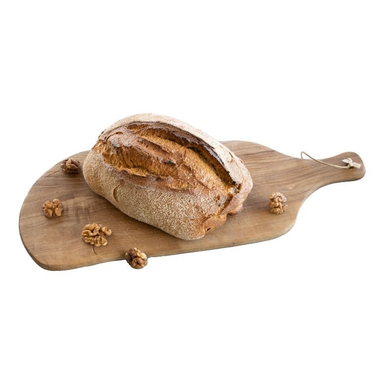 Dinkelruchmehl*, Wasser, Sauerteig* (Roggenvollkornmehl*, Wasser), Walnüsse*, Olivenöl*, Öko-Backmittel* (Gerstenmalz*/-mehl*, Zucker*, Guakernmehl*, Sojalecitin*, Salz, Ascorbinsäure, Fermente), Hefe, Salz