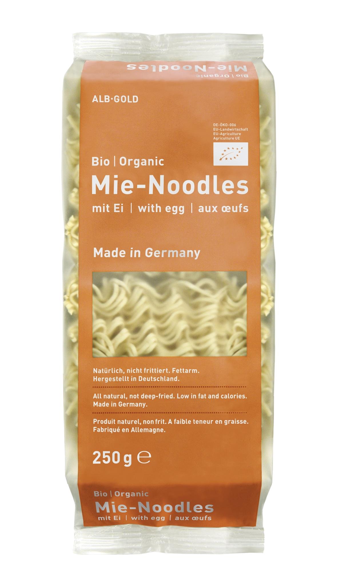 Die Mie-Noodles wie gewöhnliche Nudeln in reichlich Salzwasser knapp 3 - 5 Minuten kochen oder einfach mit kochendem Wasser übergießen und zugedeckt ca. 9 Minuten ziehen lassen.