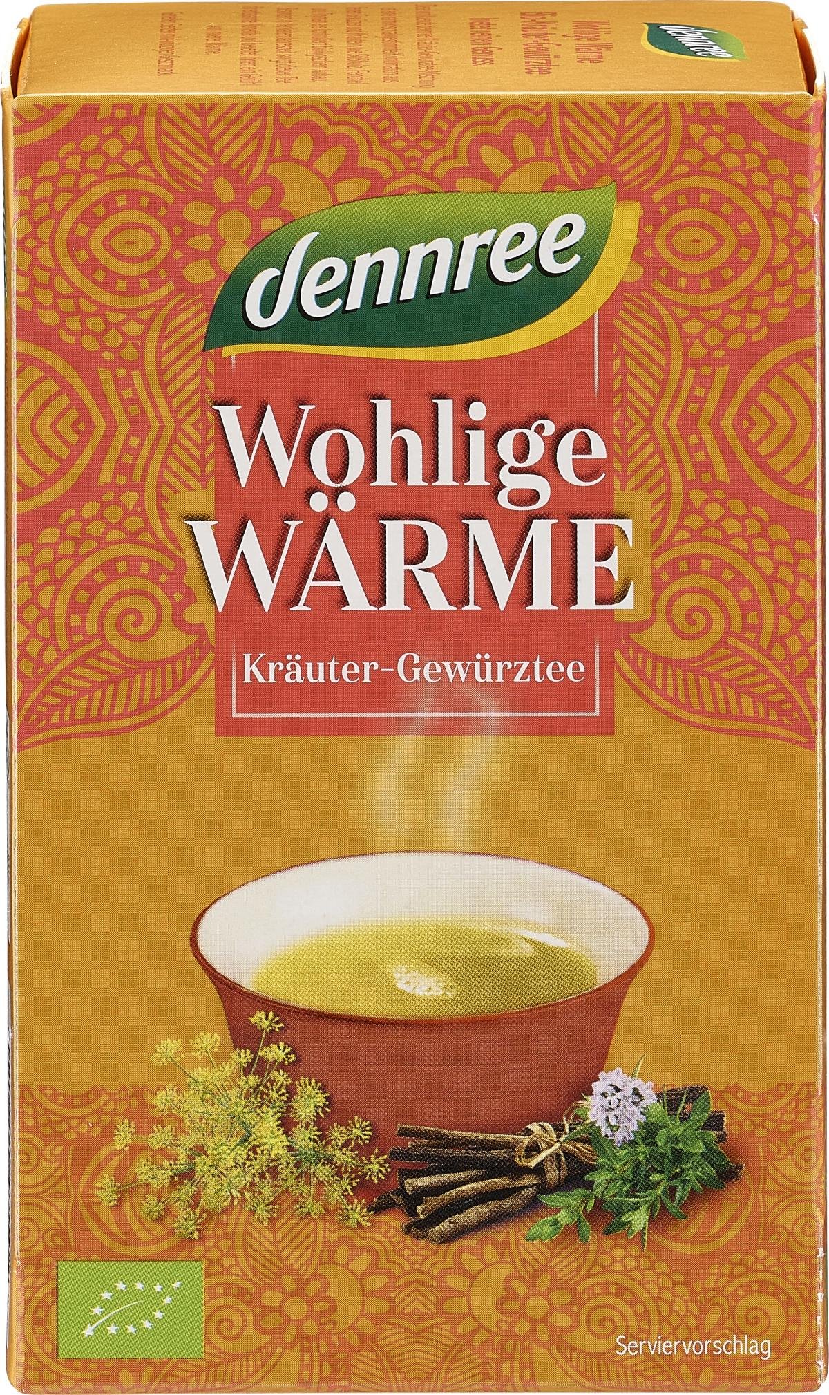Wohlige Wärme Bio-Kräuter-Gewürztee bietet reinen Genuss. Diese wohltuende dennree Kräuter-Gewürztee-Mischung ist eine harmonisch abgestimmte Kombination aus feinen Gewürzen und Kräutern wie Süßholz, Fenchel und Thymian aus kontrolliert biologischem Anbau. Besonders in der kalten Jahreszeit sorgt dieser Tee für entspannte Momente und bereitet Ihnen ein Gefühl von innerer Wärme. Genießen Sie den mild-würzigen Geschmack.