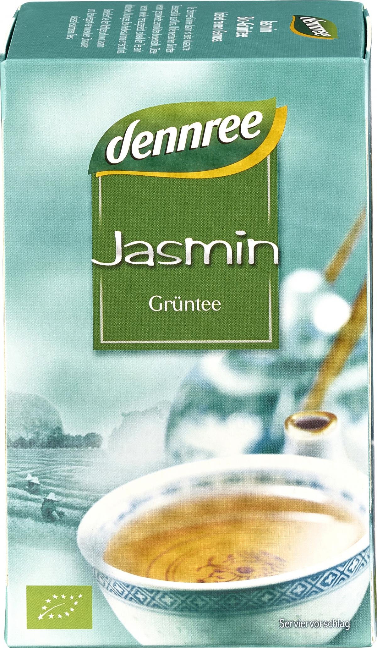 Jasmin Bio-Grüntee bietet reinen Genuss. Der dennree Grüntee Jasmin ist eine klassische Teespezialität aus China. Unfermentiertem Grüntee werden getrocknete Jasminblüten beigemischt. Diese werden wieder herausgesiebt, sobald der Tee sein duftendes, blumiges, fein-herbes Aroma erreicht hat. Genießen Sie den Wohlgeruch von Jasmin und den elegant-harmonischen Charakter dieses besonderen Tees.