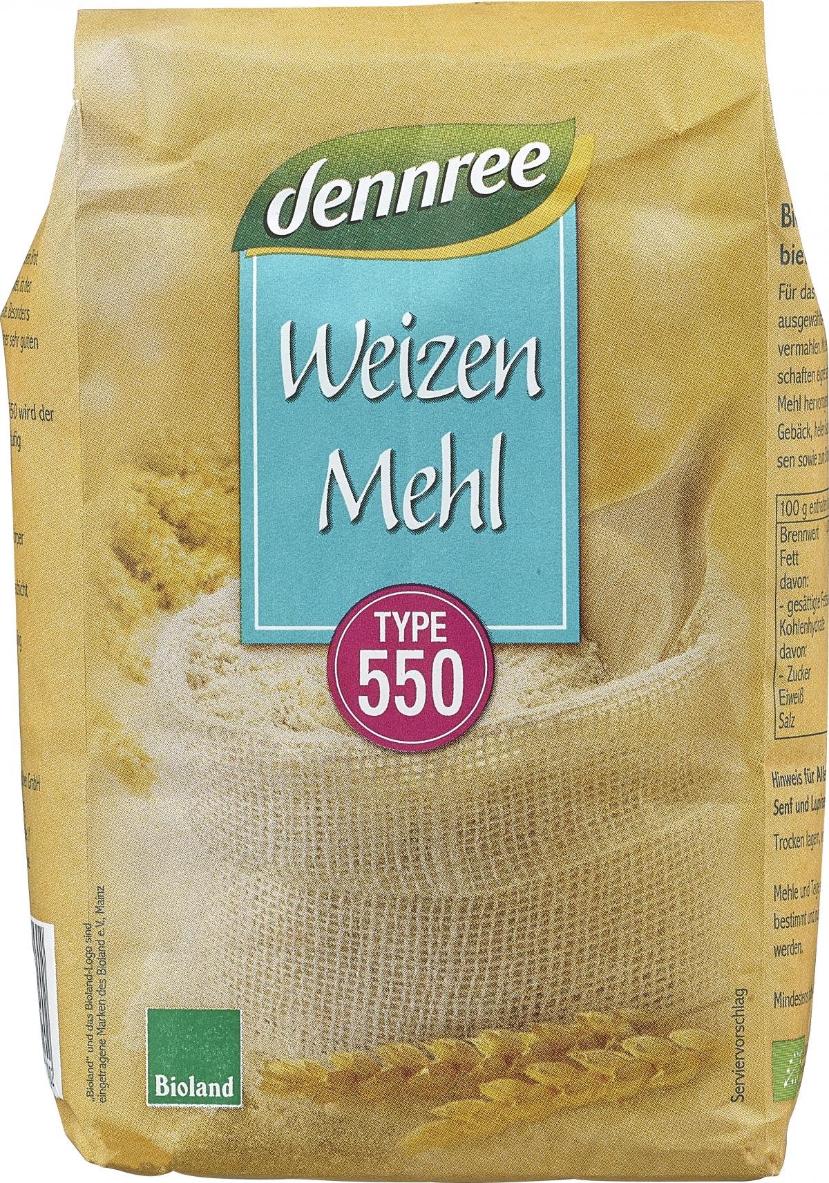 Bio-Weizenmehl Type 550 bietet reinen Genuss. In fast allen Regionen der Welt, in denen Brot die Grundlage der Ernährung bildet, ist Weizen das wichtigste Getreide. Besonders geschätzt wird er aufgrund seiner sehr guten Backeigenschaften. Für das dennree Weizenmehl Type 550 wird der Mehlkörper des Weizenkorns mehrstufig vermahlen. Mit seinen sehr guten Backeigenschaften eignet sich dieses vielseitig verwendbare Mehl hervorragend für die Herstellung von feinem Gebäck, hellen Backwaren, Torten und Süßspeisen sowie zum Binden von Suppen und Saucen.