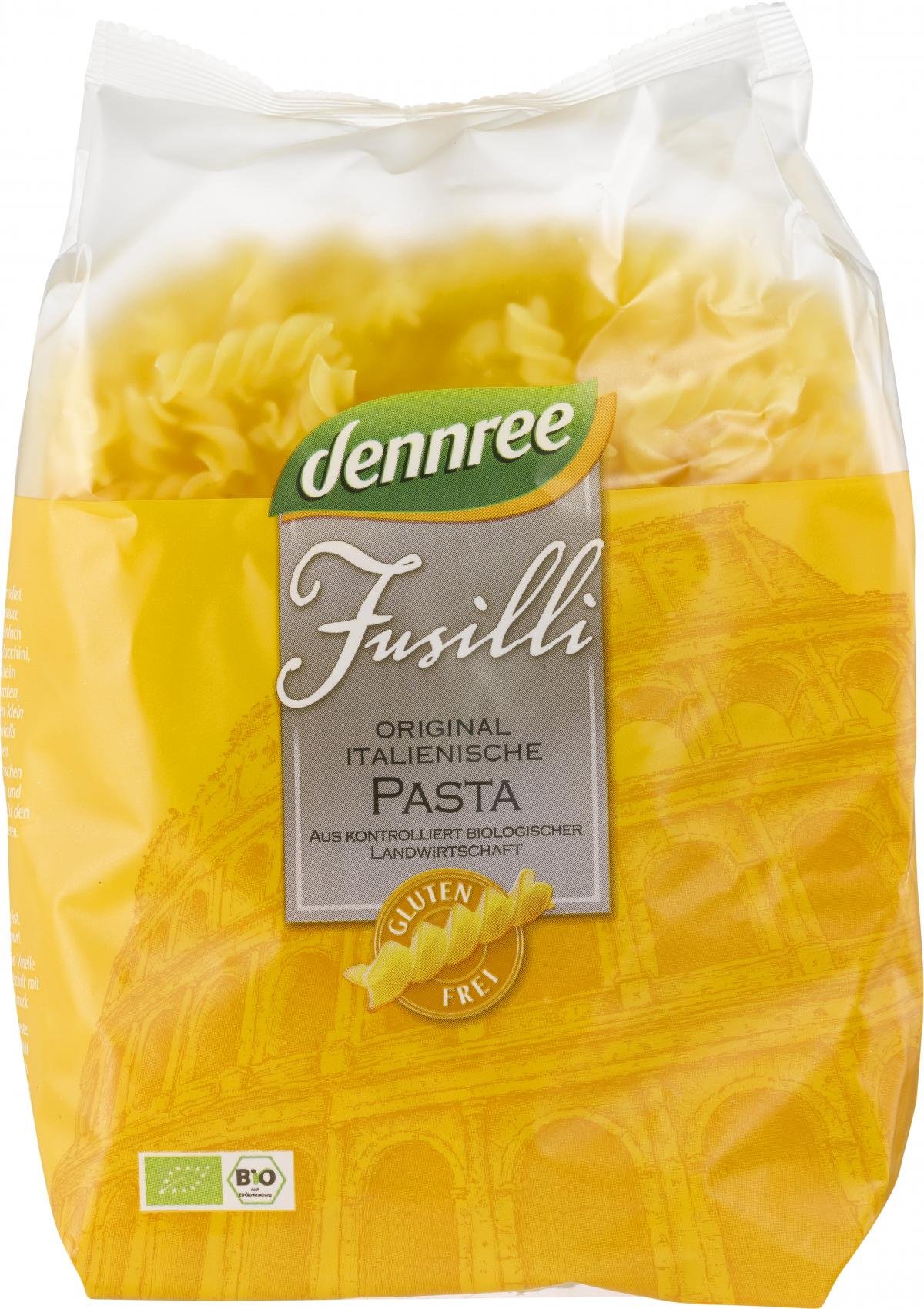 Glutenfreie Bio-Fusilli bieten reinen Genuss. Für die glutenfreien dennree Fusilli werden nur ausgewählter Mais und Reis aus kontrolliert biologischer Landwirtschaft verwendet. Durch eine exklusive Rezeptur und die schonende Verarbeitung ist es gelungen, eine glutenfreie Pasta zu kreieren, die in ihrer Farbe und Kocheigenschaft der italienischen Weizenpasta ähnelt. Genießen Sie den exzellenten Geschmack und den idealen "al dente" Biss der dennree Pasta.
