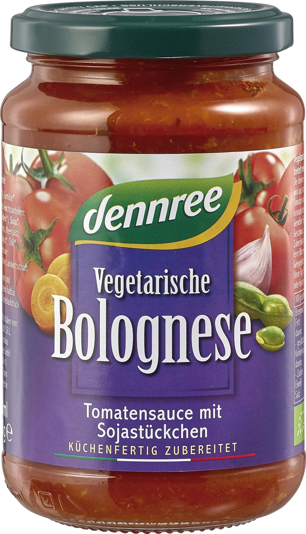 Vegetarische Bio-Bolognese bietet reinen Genuss. Die dennree Vegetarische Bolognese wird aus sonnengereiften italienischen Tomaten sowie Sojastückchen und aromatischem Gemüse hergestellt. Genießen Sie den mild-würzigen Geschmack.