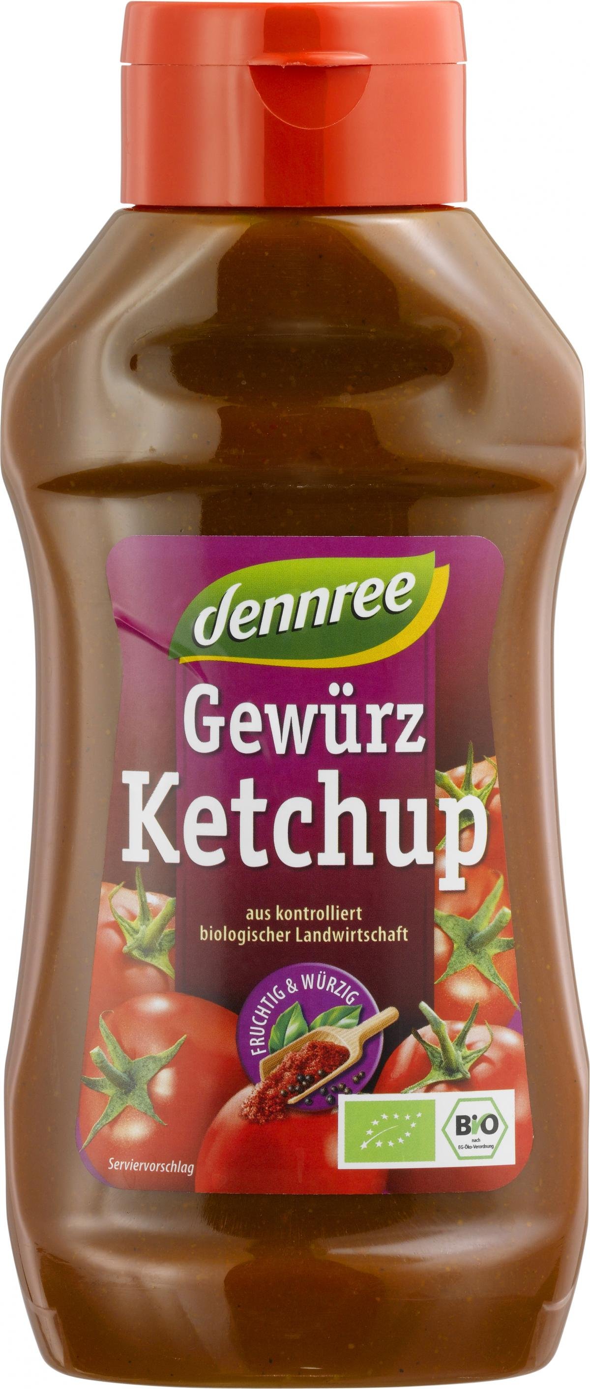 Bio-Gewürz-Ketchup bietet reinen Genuss. Das dennree Gewürz-Ketchup wird aus sonnengereiften Tomaten schonend hergestellt und mit ausgewählten Gewürzen verfeinert. Genießen Sie den fein-würzigen Geschmack.