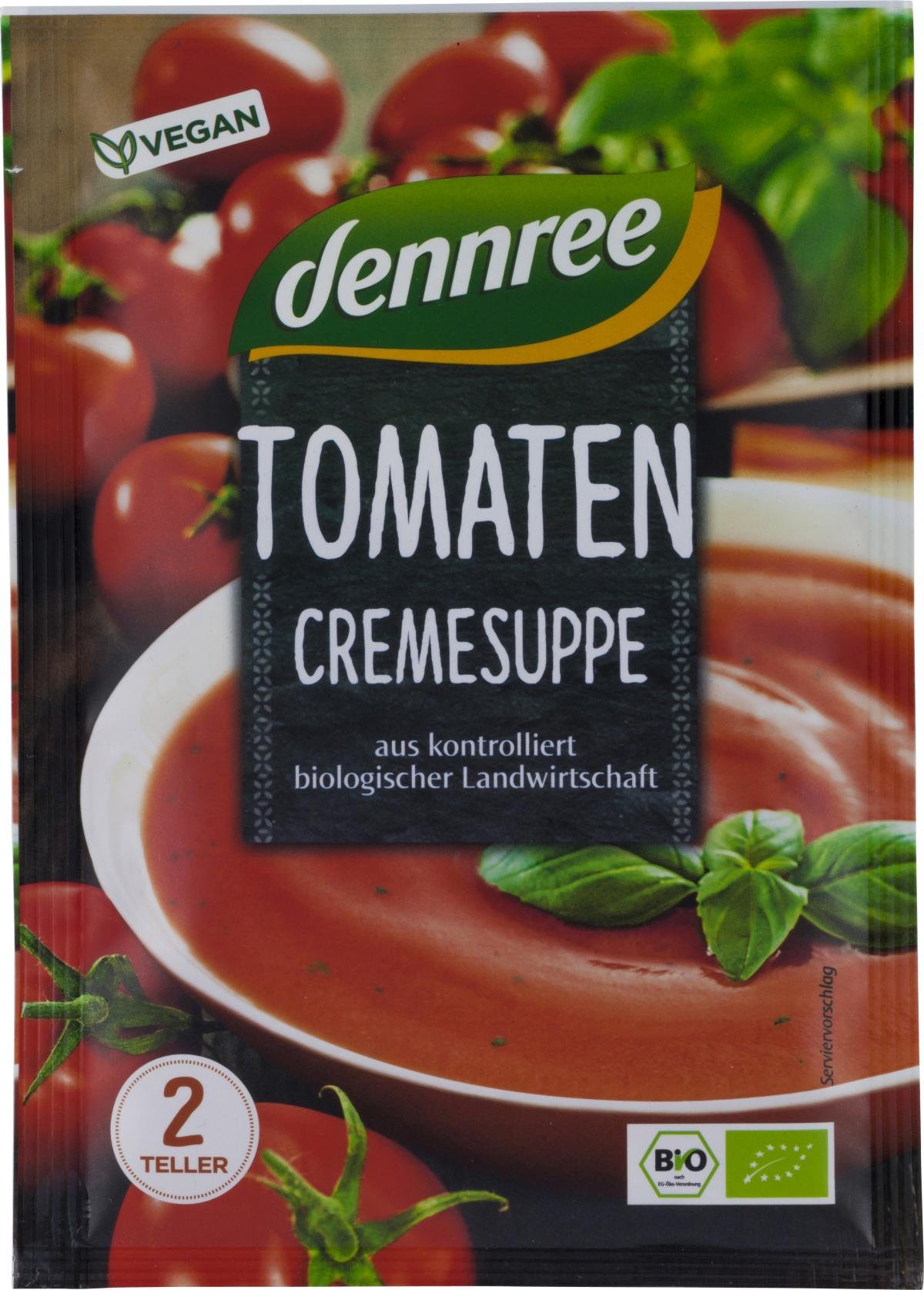 Bio-Tomatencremesuppe bietet reinen Genuss. Die dennree Tomatencremesuppe wird mit sonnengereiften Bio-Tomaten hergestellt sowie mit aromatischen Kräutern und Gewürzen verfeinert. Genießen Sie den cremig-fruchtigen Tomatengeschmack.
