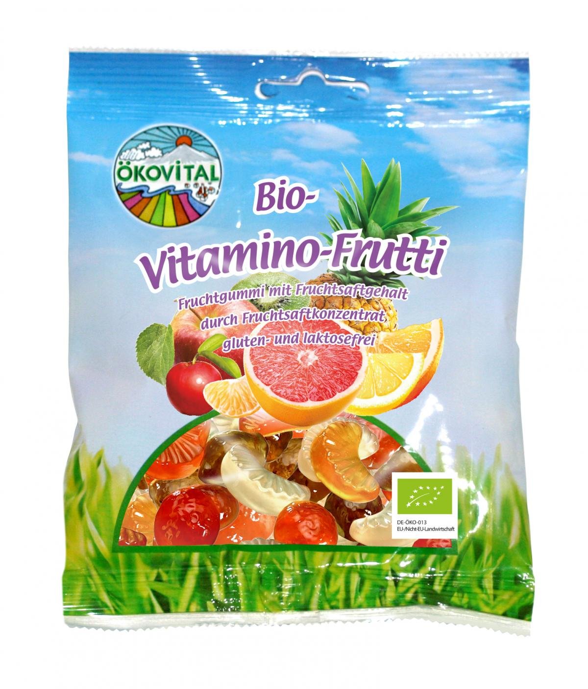 Glukosesirup*, Rübenzucker*, Schweinegelatine*, Ananas* 0,68%-, Mandarinen* 0,6%-, Orangen* 0,55%-, Zitronen* 0,46%-, Grapefruit* 0,45%-, Apfel* 0,44%-, Holunder* 0,25%- Saftkonzentrat, Kiwipüree* 0,31%, Säuerungsmittel: Zitronensäure; natürliches Acerolapulver* 0,43%, färbende Frucht- und Pflanzenauszüge: Holunder*, (Spirulina*, Saflor*, Karotte*, Kürbis*, Apfel*), natürliches Ananas-, Kiwi-, Zitronen-, Limetten-, Orangen Aroma, Überzugsmittel: Carnaubawachs*