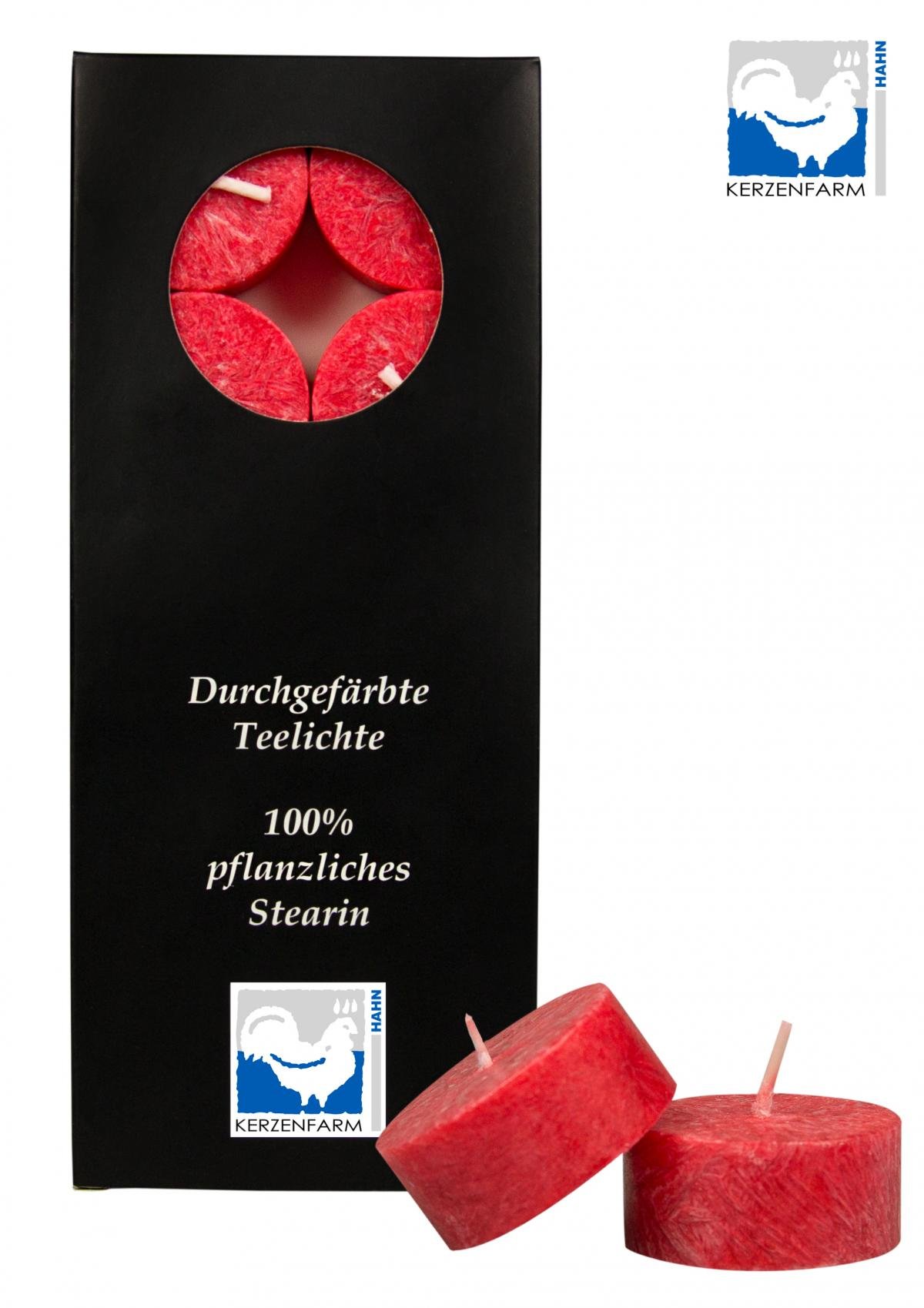 Durchgefärbte Teelichte aus 100% Stearin zur Verwendung im Glas.