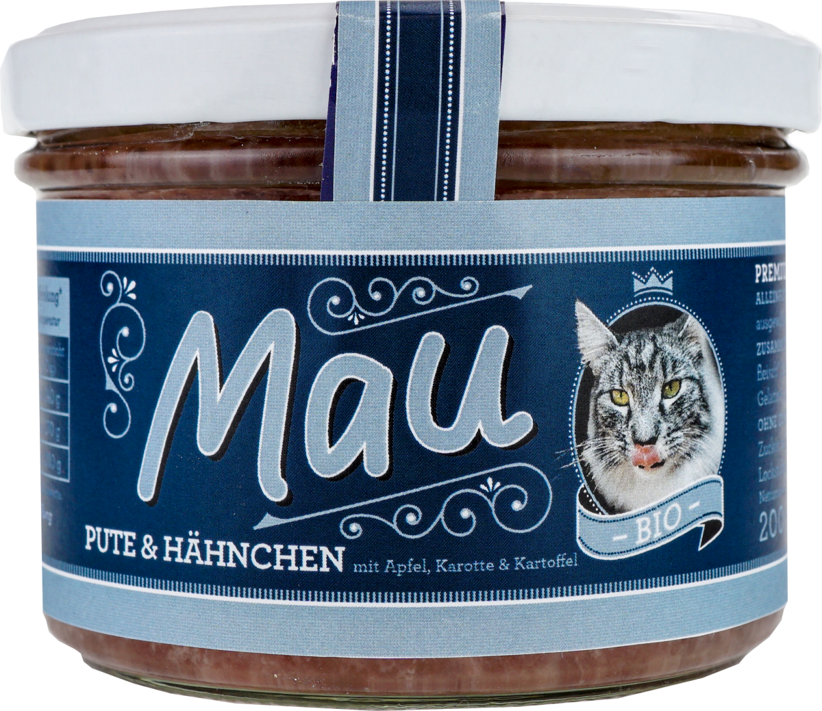Bio Katzennahrung im Glas aus eigener Herstellung mit offener Deklaration - ohne Verwendung von Konservierungsmitteln, Füll- und Lockstoffen, Aromen und Farbstoffe, Zucker und Geschmacksverstärker sowie Tiermehle.