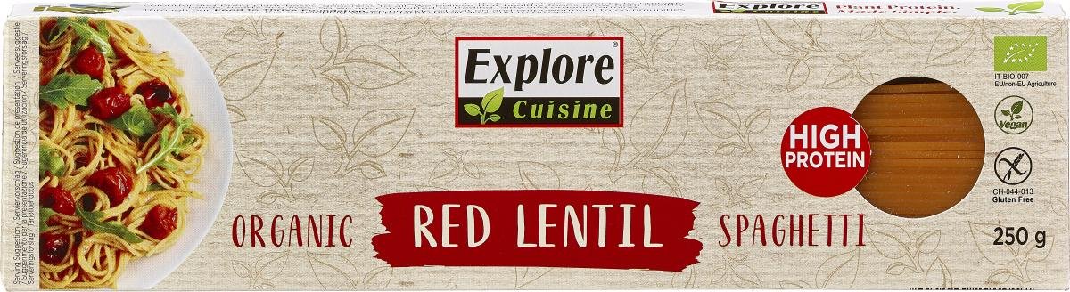 Spaghetti aus roten Linsen sind glutenfrei, cholesterinfrei und zeichnen sich durch einen hohen Gehalt an pflanzlichen Proteinen und Ballaststoffen aus. Sie sind zudem fett- und kalorienarm und passen damit ideal zu einer gesunden Ernährungsweise.