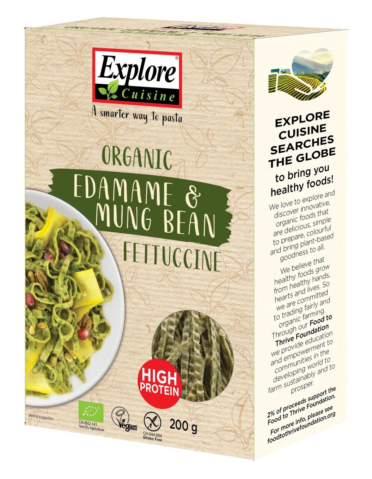 Die Fettuccine aus Edamame- und Mungbohnen sind cholesterin- und glutenfrei. Sie sind kalorien- und fettarm...