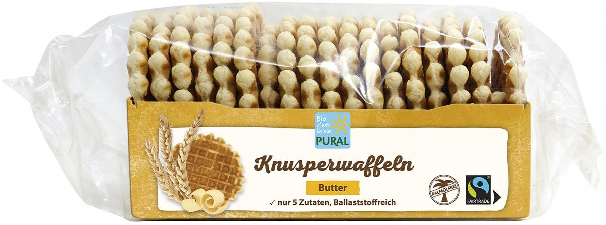 Unsere feinen Pural-Knusperwaffeln mit Butter eignen sich Ideal zu Ihren Kaffee- oder Teepausen. Die köstlich knusprigen Waffeln werden aus Butter und Rohrzucker hergestellt und überzeugen jeden Feinschmecker!
