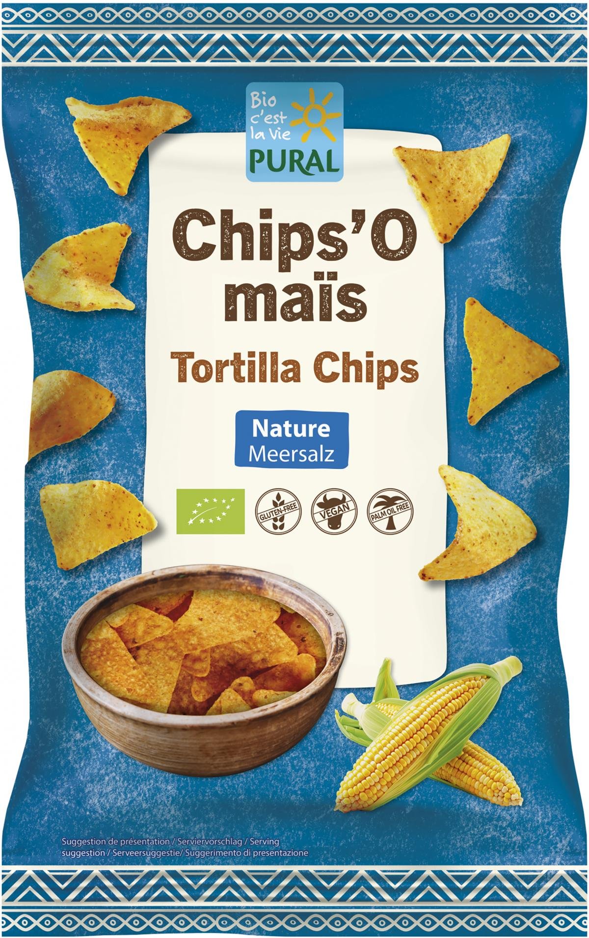Erleben Sie den köstlichen Geschmack unserer veganen, glutenfreien Chips'O maïs Natur – der ideale Bio-Snack für Genießer. Natürlich, knusprig gebacken und mit einer Prise Salz verfeinert, bieten sie den perfekten Mix aus authentischem Geschmack und hochwertiger Qualität. Unsere Bio Tortilla Chips werden aus Maismehl hergestellt und in Sonnenblumenöl gebacken, wodurch sie von Natur aus glutenfrei und palmölfrei sind.