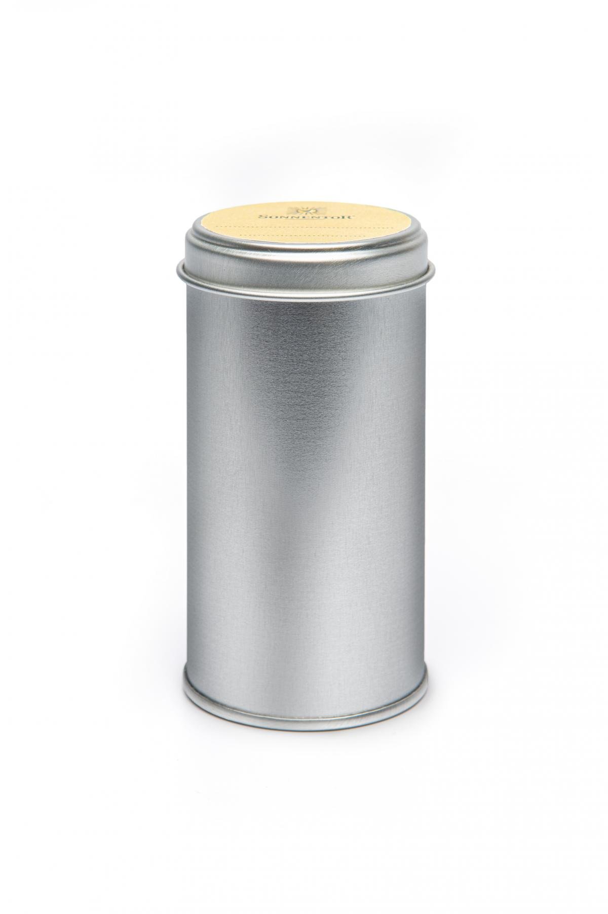 Leere Streudose mit Universaletikett zum Aufbewahren deiner SONNENTOR Gewürze. Wiederbefüllbar. Metalleinsatz mit einem Loch.