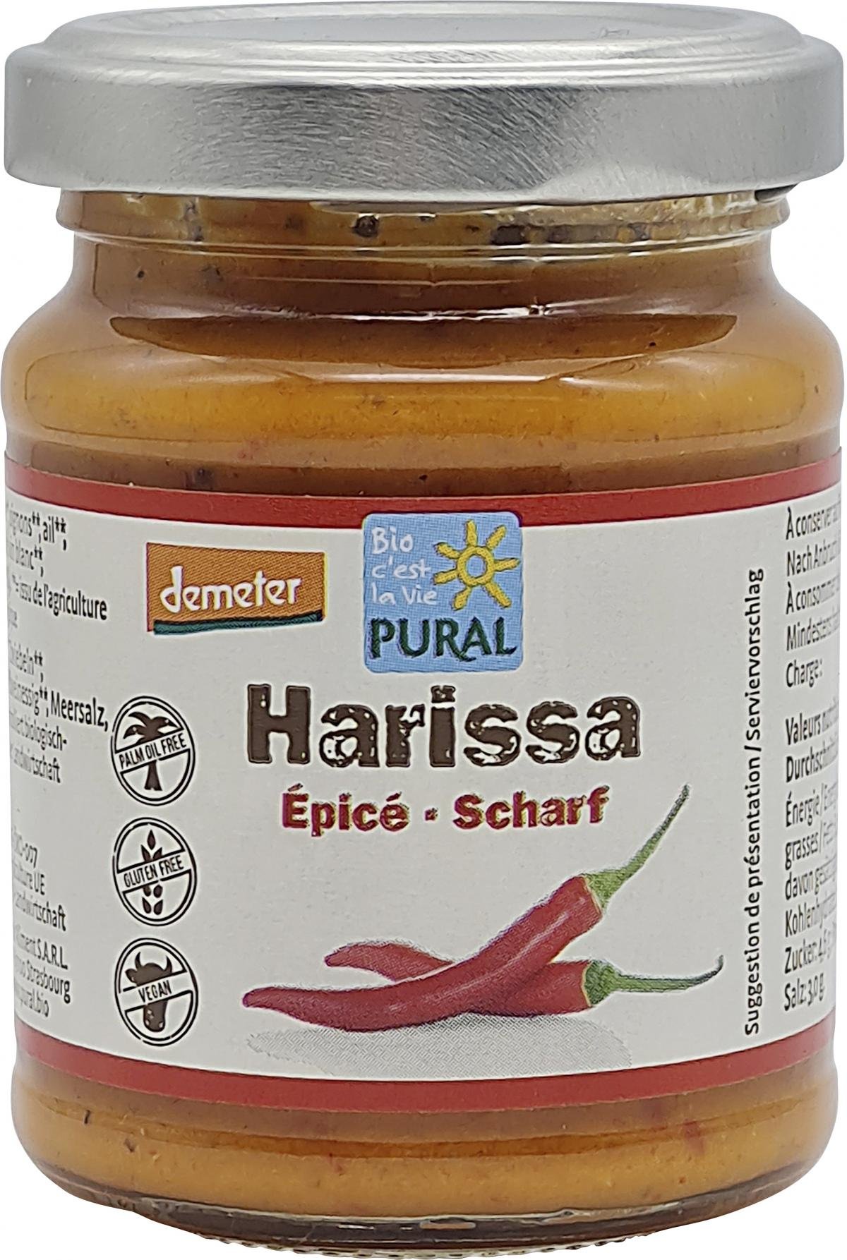 Der Pural Demeter Harissa wird mit Zutaten aus biologischem und biodynamischem Anbau hergestellt. Harissa ist eine würzig-feurige Sauce, die sich für nahezu alle Speise eignet, die etwas Schärfe und intensiven Geschmack vertragen können. Wir empfehlen sie zu Cous-Cous, Reisgerichten, Gegrilltem oder Gebratenem aller Art und als Beigabe zu scharfen Suppen und Eintöpfen.