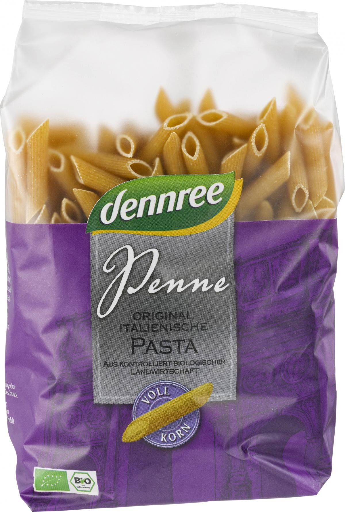 Bio-Hartweizen-Vollkorn-Penne bieten reinen Genuss. Für die dennree Hartweizen-Vollkorn-Penne wird nur ausgewählter Hartweizen aus kontrolliert biologischer Landwirtschaft verwendet und nach original italienischem Rezept schonend verarbeitet. Genießen Sie den exzellenten Geschmack und den idealen "al dente" Biss der dennree Pasta.