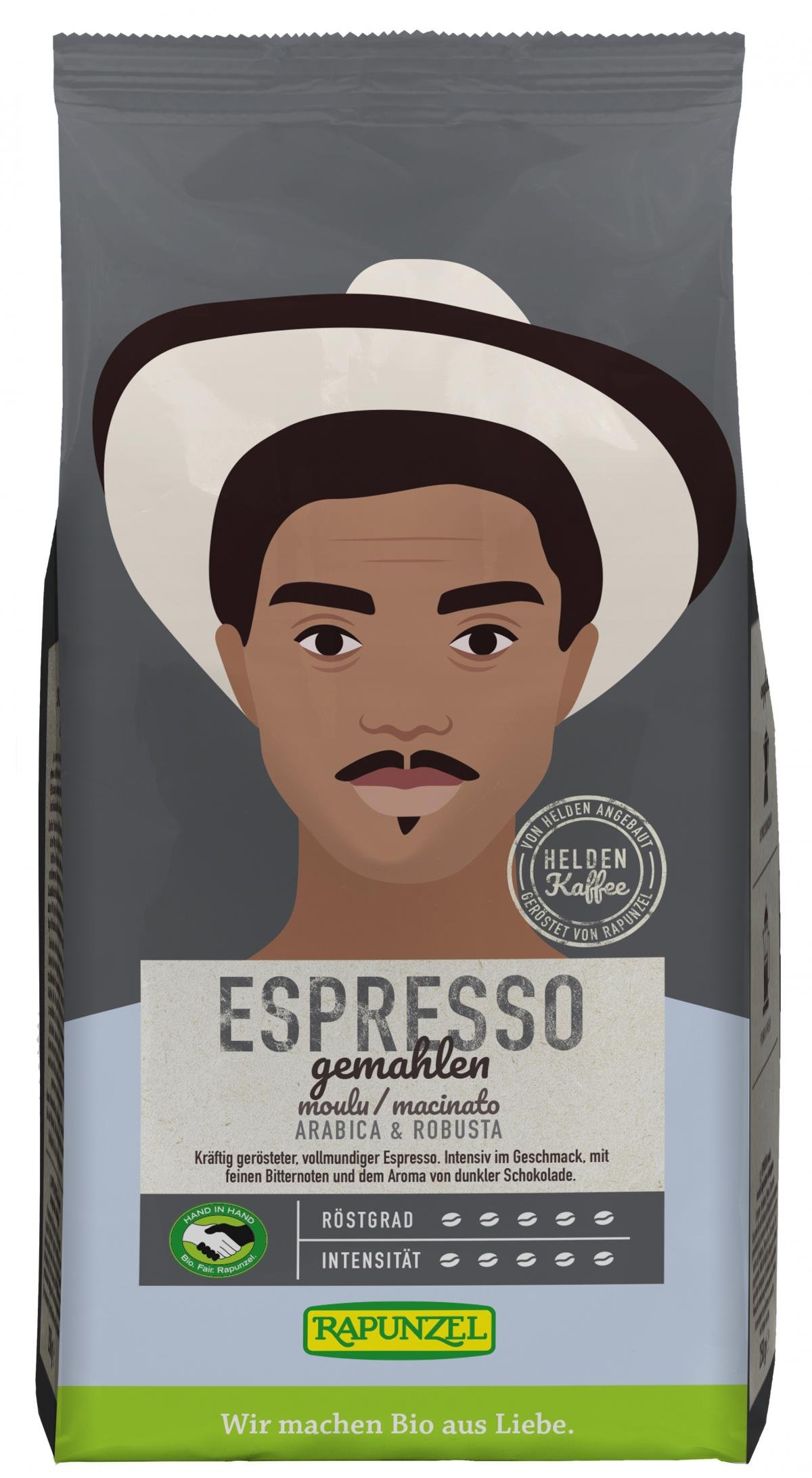 HELDENKAFFEE aus Honduras, Peru und Tansania - fair gehandelt von Rapunzel HAND IN HAND-Partnern. Arabica & Robusta. Kräftig gerösteter, vollmundiger Espresso. Intensiv im Geschmack, mit feinen Bitternoten und dem Aroma von dunkler Schokolade. Unser Heldenkaffee heißt so, weil er von echten Helden kommt. Denn die Kaffeebauern sorgen für eine blühende Biodiversität in den Anbaugebieten. Der Kaffeeanbau in Mischkultur und unter Schattenbäumen sorgt neben stabilen und artenreichen Ökosystemen für die außergewöhnliche Qualität der Bohnen. Dank der intensiven Pflege der Kaffeesträucher, der sorgfältigen Handarbeit und der besonderen Auslese der Bohnen entsteht feinster, biologischer und 100% fair gehandelter Kaffeegenuss - angebaut von echten Kaffeehelden.