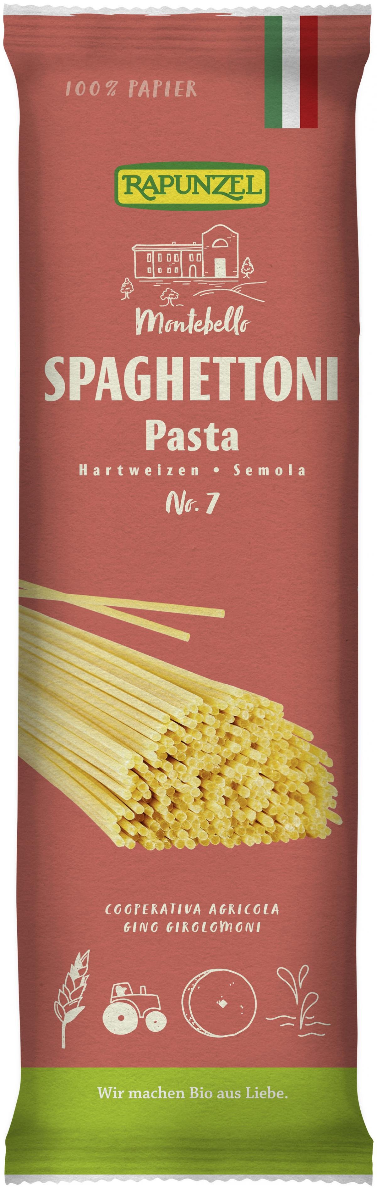 Der Klassiker mit größerem Durchmesser! Die Pasta unterstreicht den Geschmack vielfältiger Saucen, ob alla 'Aglio e olio' oder zu fruchtiger Tomatensauce. Unser italienischer Pastificio stellt die Rapunzel Pasta nach alter Tradition nur aus bestem italienischem Hartweizengrieß und reinem Quellwasser her. Eine langsame und schonende Trocknung bei niedrigen Temperaturen sorgt für den typischen Geschmack und beim Kochen für den richtigen 'al dente'-Biss.