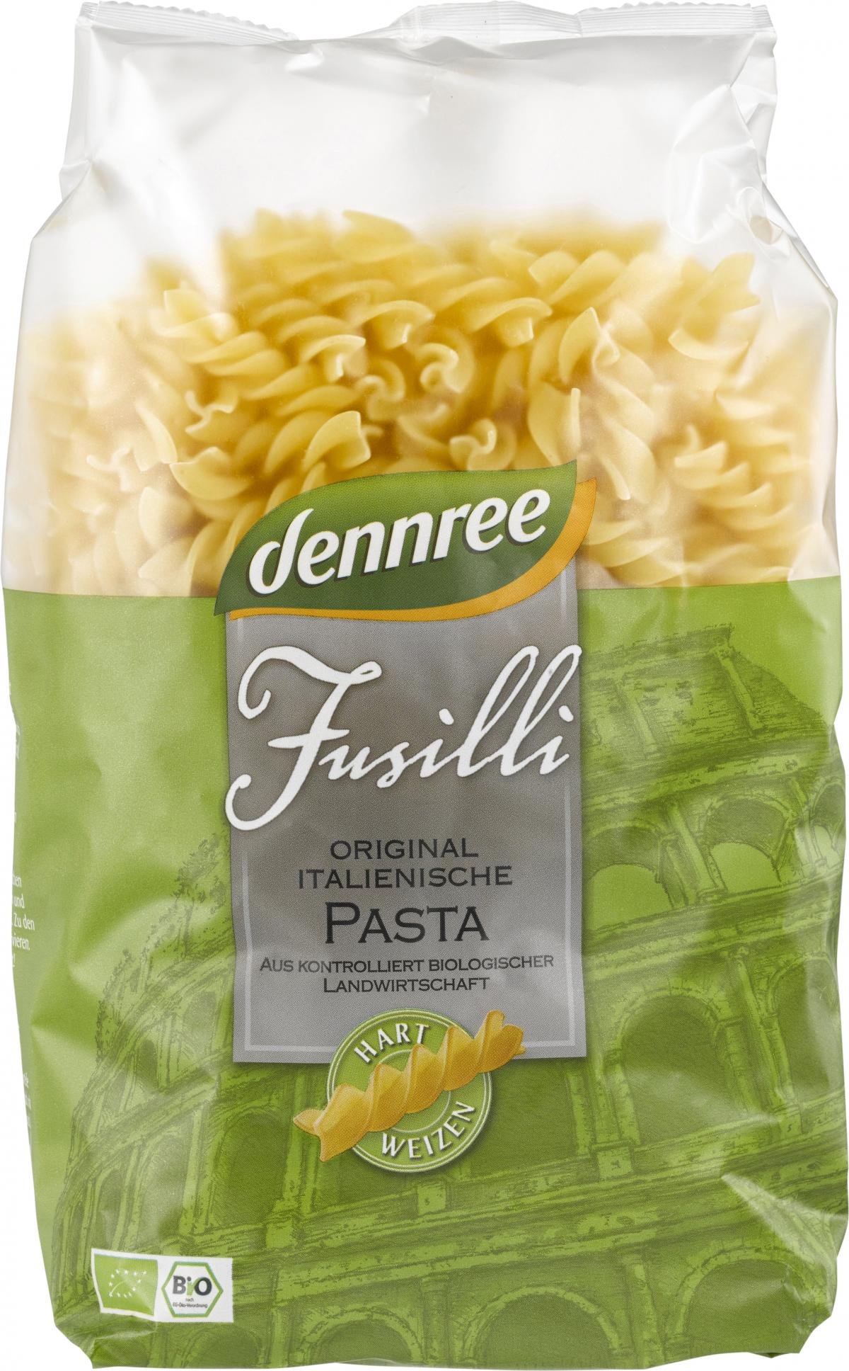 Bio-Hartweizen-Fusilli bieten reinen Genuss. Für die dennree Hartweizen-Fusilli wird nur ausgewählter Hartweizen aus kontrolliert biologischer Landwirtschaft verwendet und nach original italienischem Rezept schonend verarbeitet. Genießen Sie den exzellenten Geschmack und den idealen "al dente" Biss der dennree Pasta.